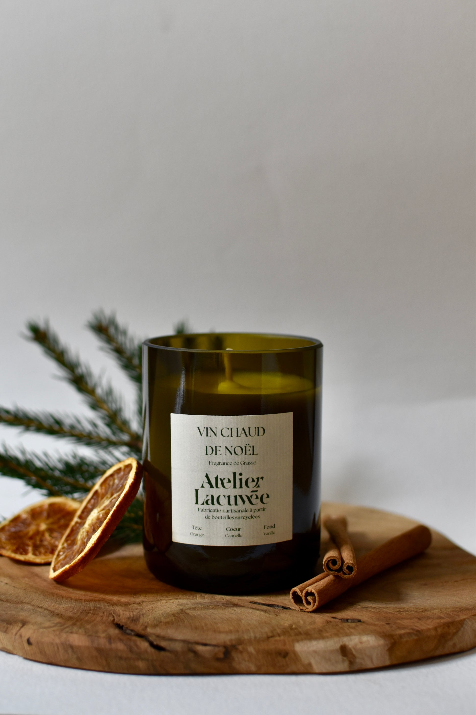 Plongez dans la magie des derniers mois de l'année avec la bougie artisanale « Vin chaud de Noël » de l’Atelier Lacuvée.